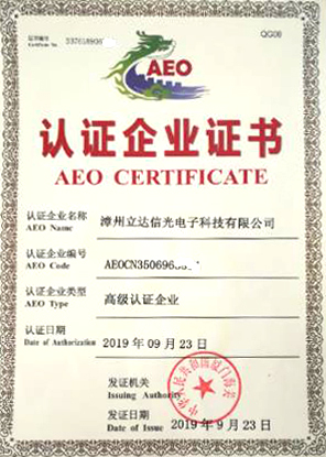 漳州雀魂光电子科技有限公司获得漳州海关AEO高级认证